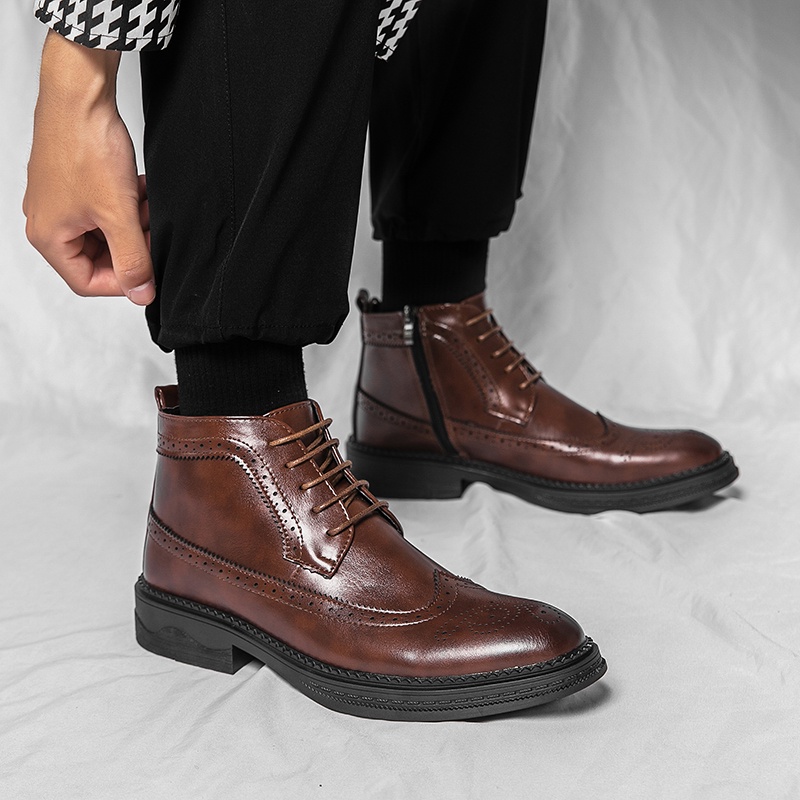Giày Bốt Da Bò Cổ Cao Tới Mắt Cá Chân Phối Khóa Kéo Kiểu Retro Thời Trang Mùa Đông Cho Nam