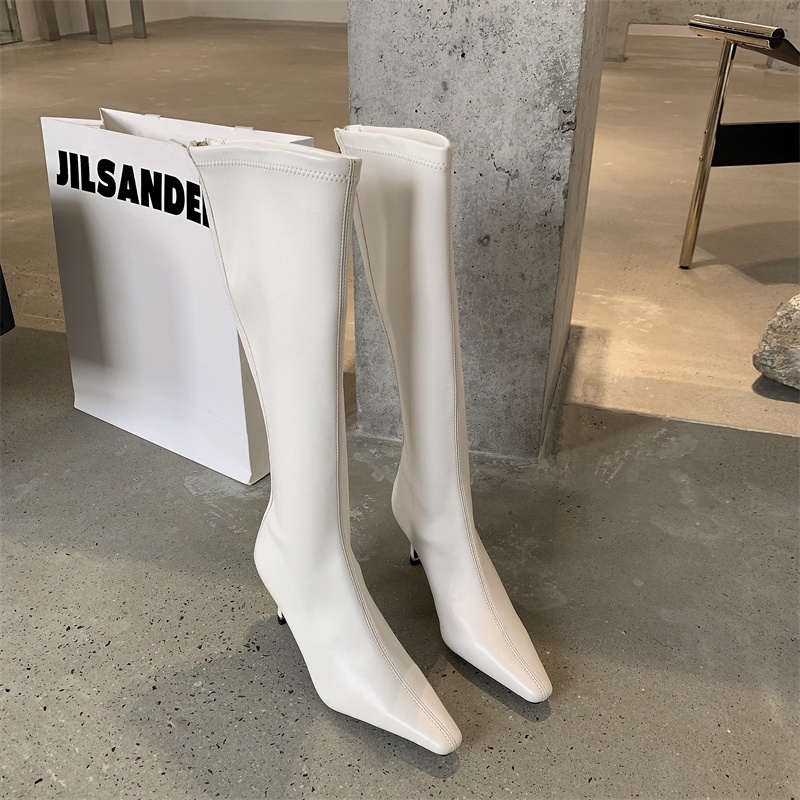 Giày bốt Martin cổ cao gót vừa phối khóa kéo thiết kế đơn giản thời trang mùa thu 2021 dành cho nữ