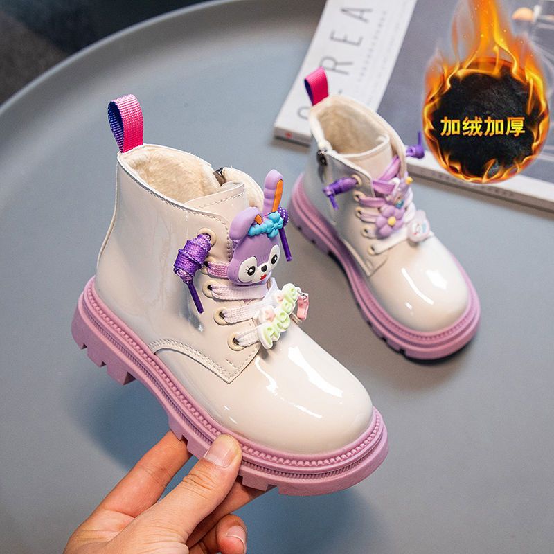 Giày Bốt Martin Lót Lông Cừu Mềm Mại Giữ Ấm Mùa Thu Đông Phong Cách Hàn Quốc 2022 Cho Bé Gái