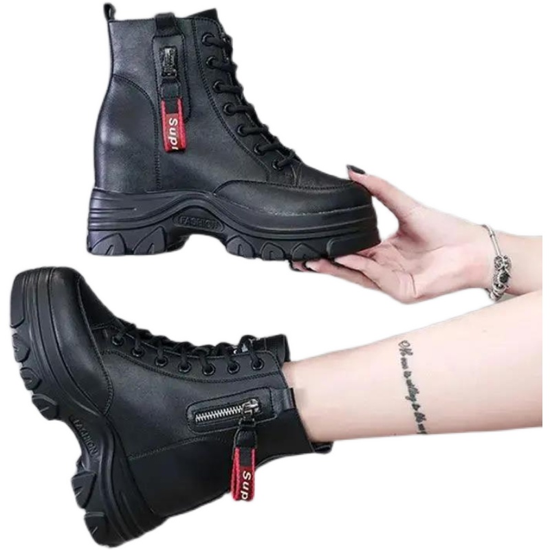 Giày Bốt Martin Mũi Tròn Tăng Chiều Cao Phong Cách Anh Quốc Sành Điệu Thời Trang Thu Đông Cho Nữ 2021