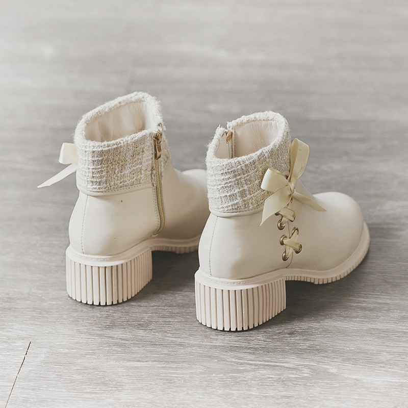 Giày bốt Martin phong cách Nhật Bản đế cao 5P đính nơ cổ cao