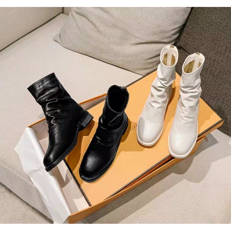 Giày bốt nữ cao cổ da nhăn đế bằng siêu chất