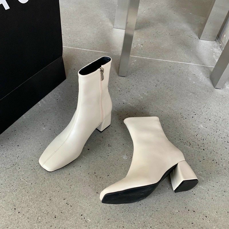 THÔNG TIN SẢN PHẨM: - Kiểu dáng: Boots nữ cổ thấp - Kiểu khóa: Khóa cạnh - Giày boot da mềm mại, dễ lau chùi, may đường chỉ viền giữa tạo sự nhỏ gọn cho đôi chân. - Gót 5cm cùng thiết kế cổ cao mũi vuông, cổ ôm cho dáng chân thon thả. Thiết kế khóa kéo tiện lợi, dễ m