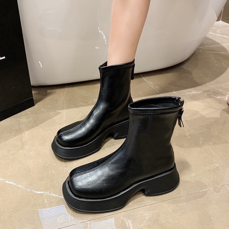 Đen Giày Bốt martin Đế Dày Tăng Chiều Cao Phong Cách Anh Quốc Thời Trang Mùa Hè 2023 Cho Nữ