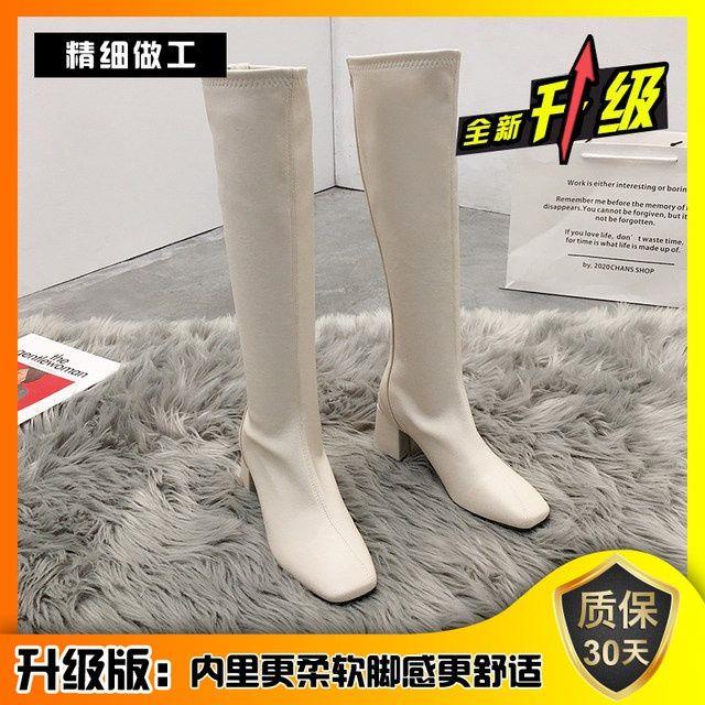 Giày Boot Cao Gót Mũi Vuông Bằng Da PU Có Khóa Kéo Thời Trang Dành Cho Nữ
