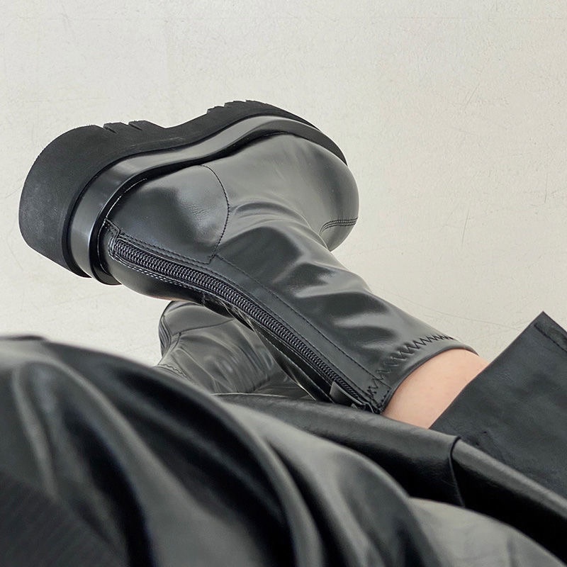 Giày boot nữ cao cổ khoá kéo đế cao 6cm cá tính