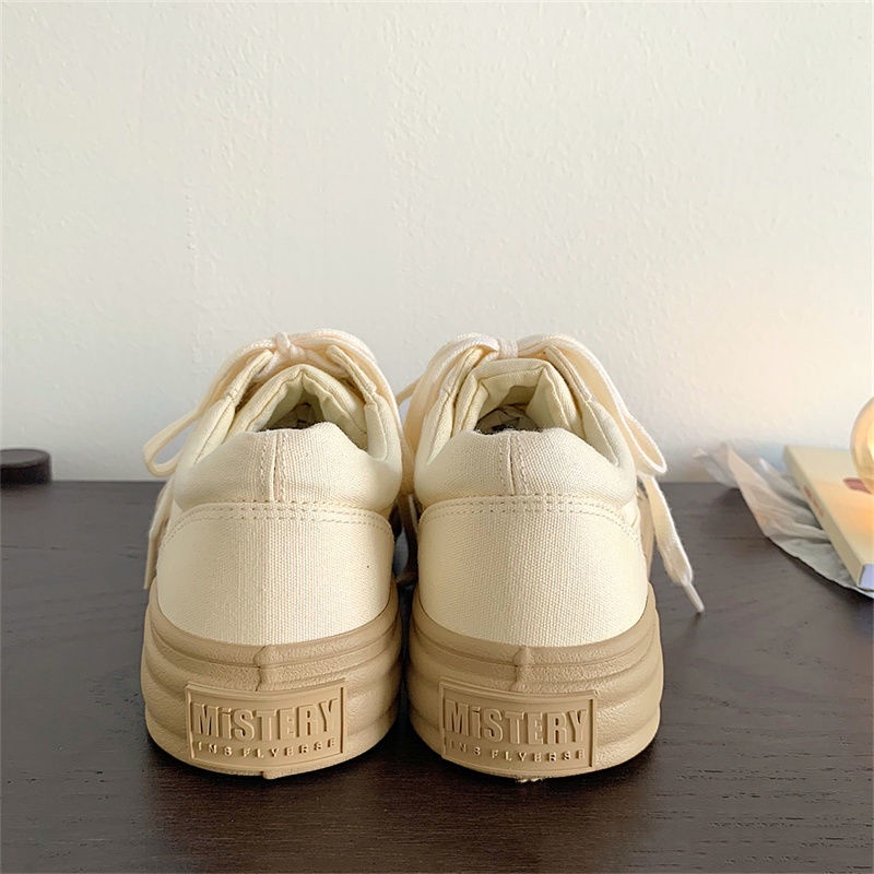 Giày thể thao nữ cổ thấp đế CV nhẹ 5 cm vải canvas thiết kế mác cạnh WANG