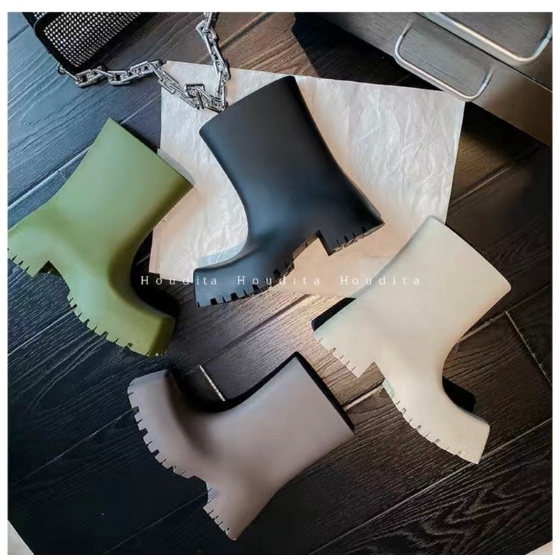 Giày cao cổ boot nữ cao su nguyên khối trơn gót 5 phân - HOUDITA - SBMV-006