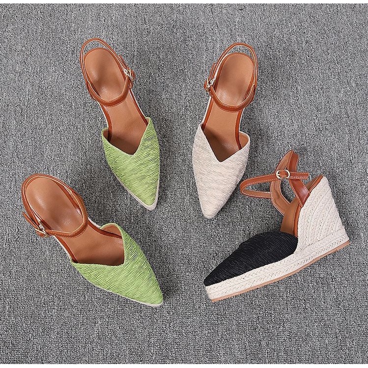 Giày cao gót đế xuồng bọc cói 10cm, chất vải lụa satin lót da Pu