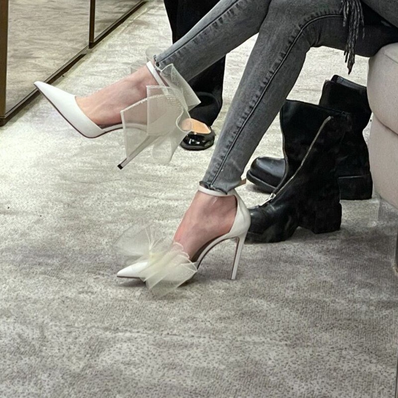Giày Cao Gót Mũi Nhọn Đính Nơ Màu Đen Sang Trọng Cho Nữ