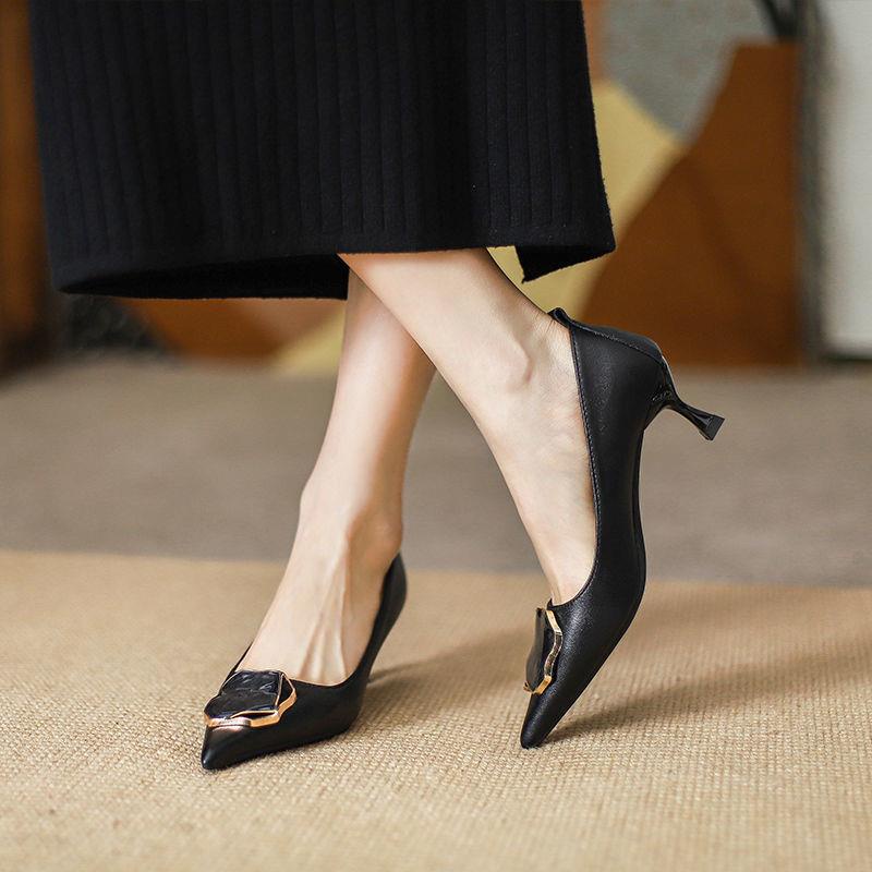 Giày Cao Gót Mũi Nhọn Miệng Nông Kiểu Pháp Thời Trang Xuân Thu Quyến Rũ Cho Nữ