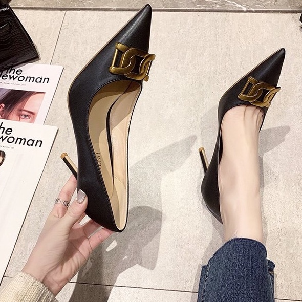 Giày cao gót mũi nhọn sexy gót nhọn công sở 2021 trơn 9cm dự tiệc