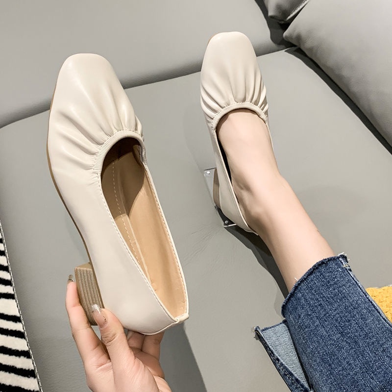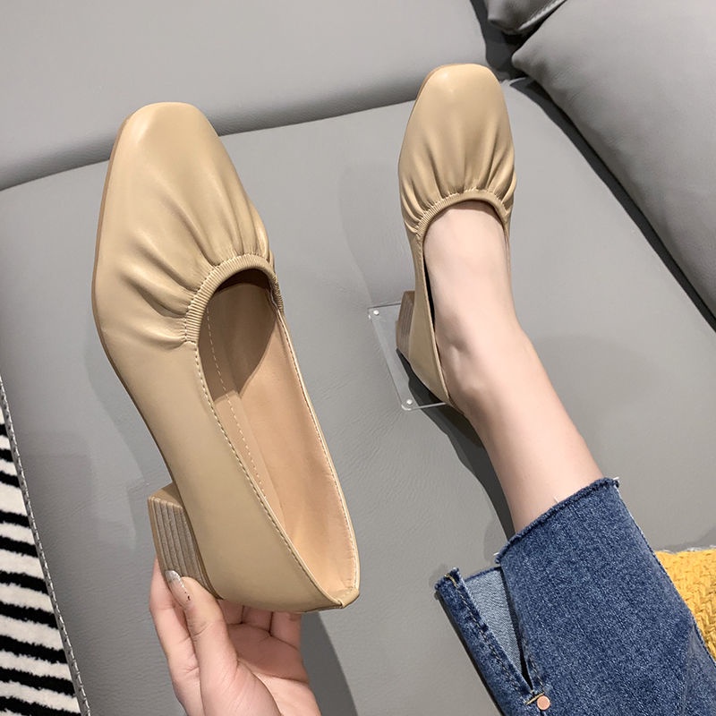Giày Cao Gót Mũi Vuông Đế Mềm Thời Trang Pháp Dễ Phối Đồ Cho Nữ