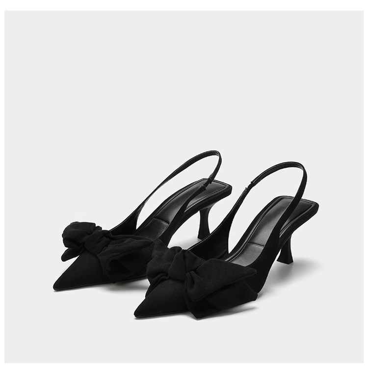 Giày cao gót nữ mũi nhọn hở gót thanh lịch tiểu thư nơ vải lụa satin cao cấp