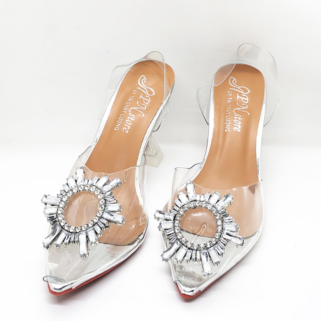 Giày Cao Gót Nhọn 7p Bít Mũi Trong Phối Xoàn