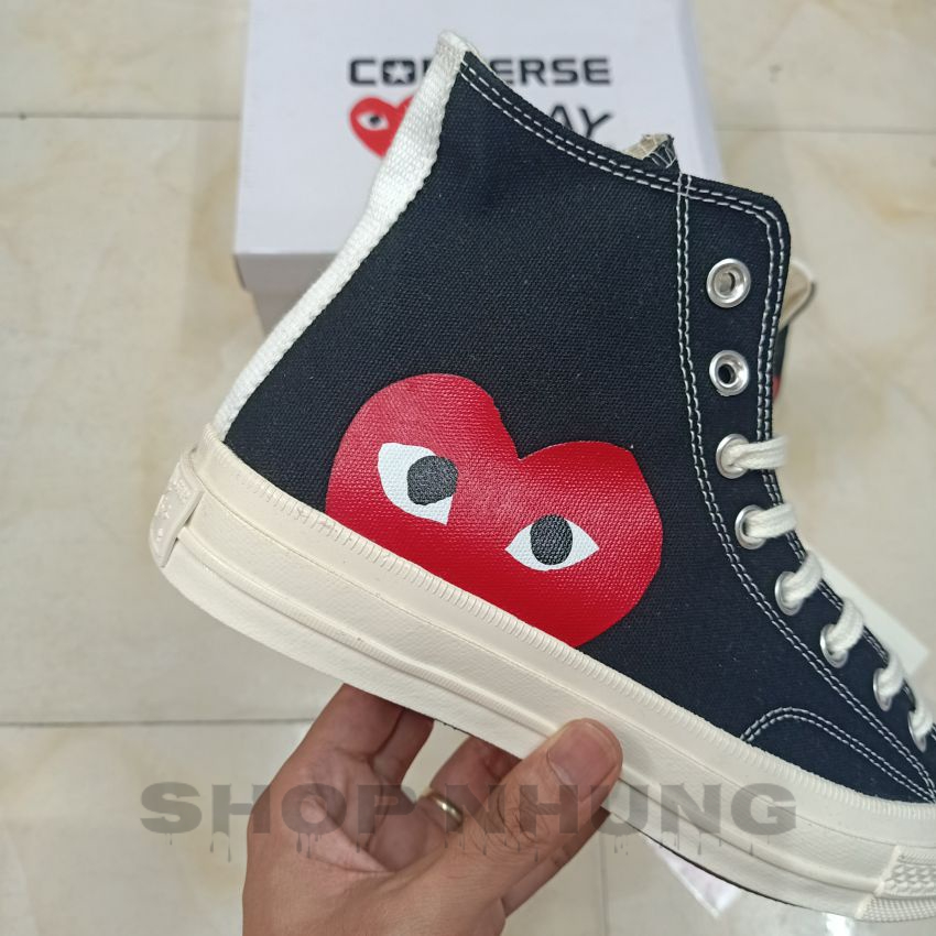 Giày converse nam nữ cdg chuck play tim màu đen cổ cao