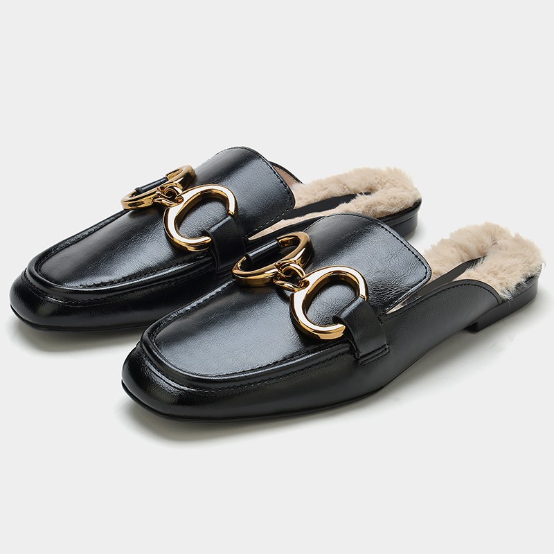 GIÀY DÉP SỤC DA ZARA XUẤT DƯ TUỒN NỮ MÀU ĐEN ĐẾ BỆT CÓ LÔNG