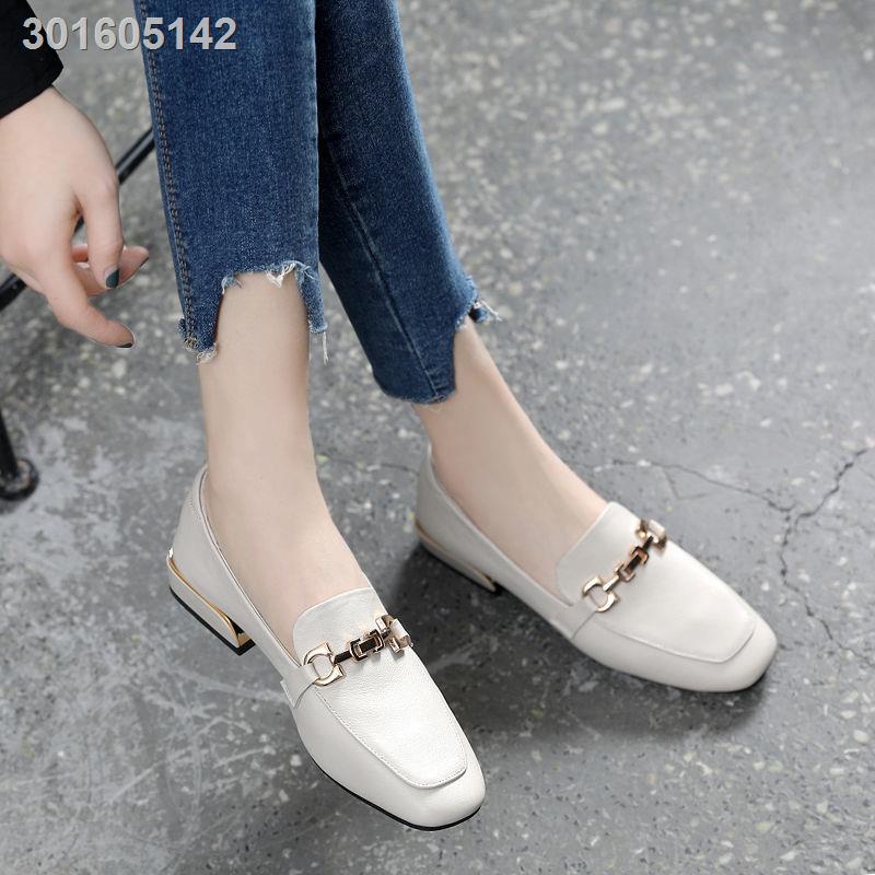 Giày da đế thấp dày dặn miệng nông phối chuỗi dây thời trang dành cho nữ 2021