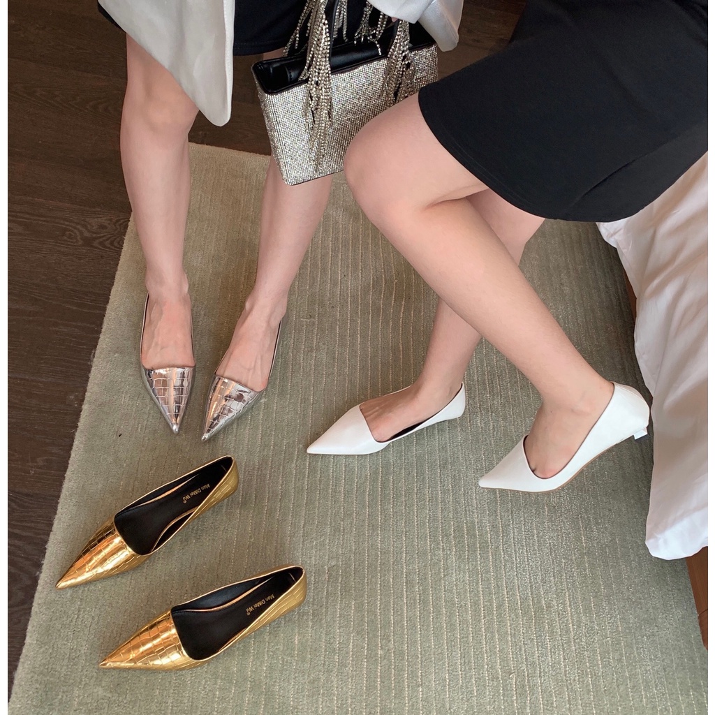 Giày gót thấp mũi nhọn miệng nông thời trang mùa thu 2021 cho nữ