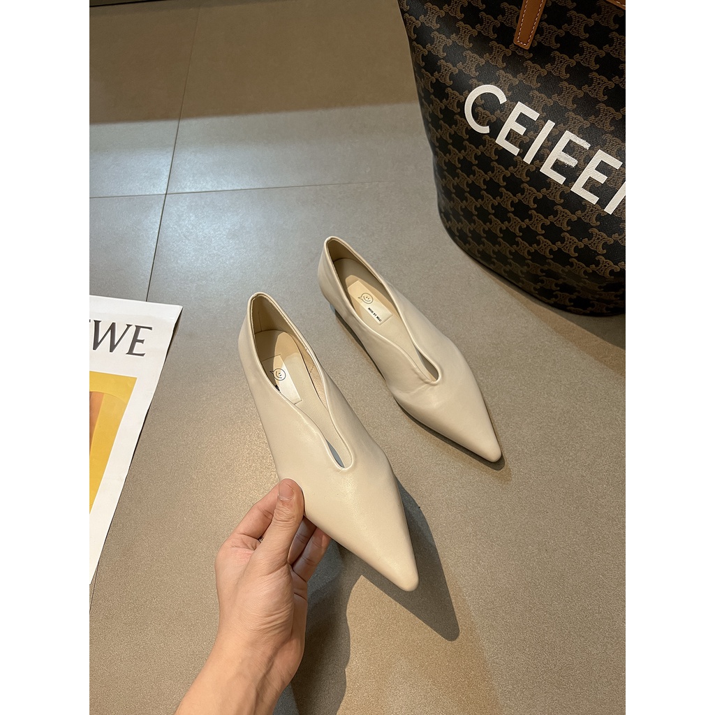 Le Ann 'S tomorrow ~ ~ Giày Da Thật Mũi Nhọn Gót Thấp Nhỏ Phong Cách Pháp Dễ Phối Đồ Cho Nữ