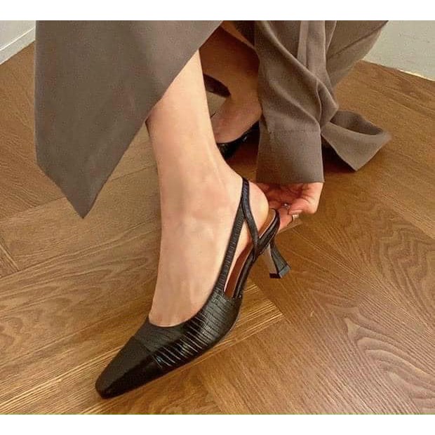 Giày cao gót 2023 mùa xuân và mùa hè mới phong cách pháp nhẹ nhàng gió mũi nhọn giày all-match khí chất gót dày màu đen