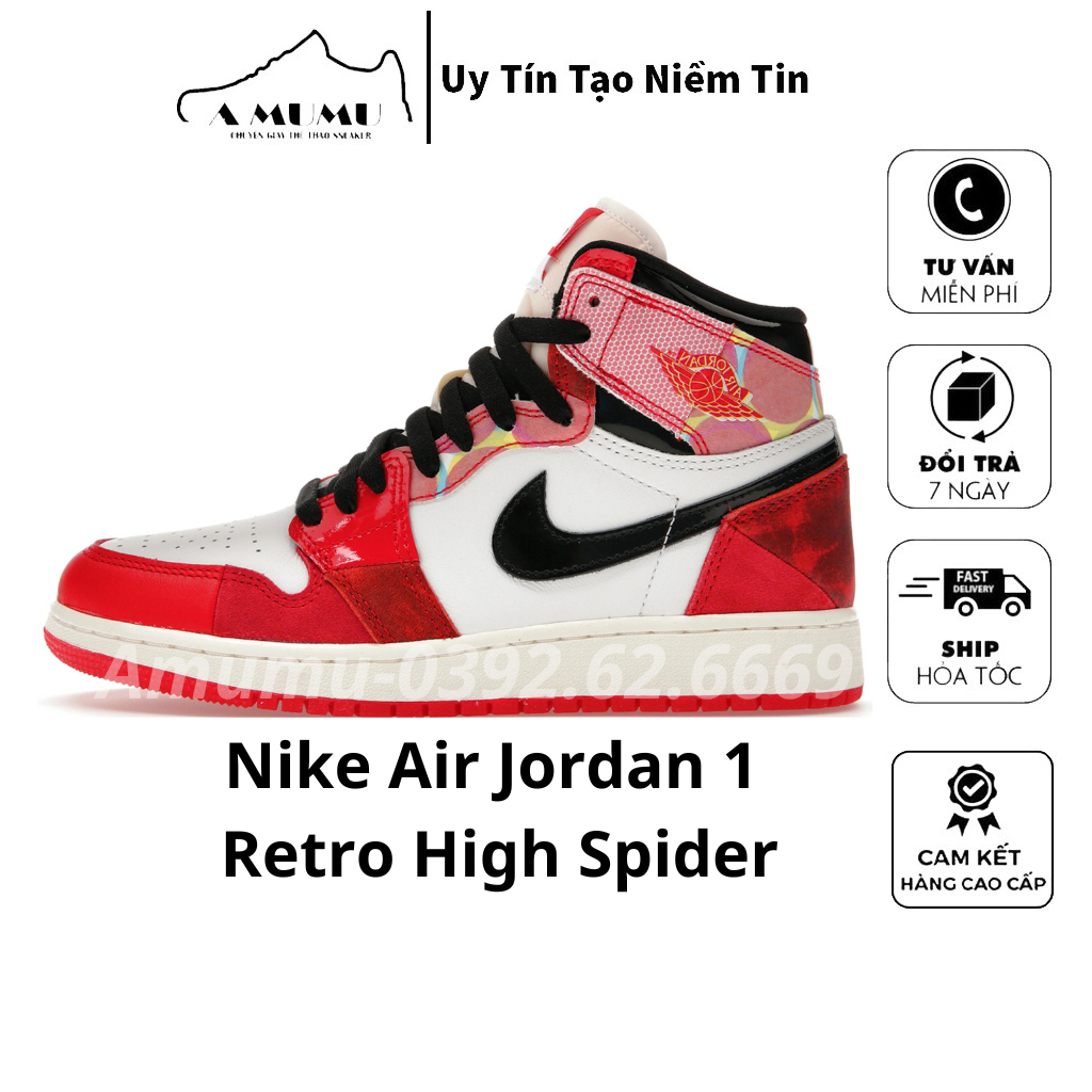 Giày sneaker Jordan 1 retro high spider man cao cấp giày Jordan cổ cao đỏ người nhện Full box bill