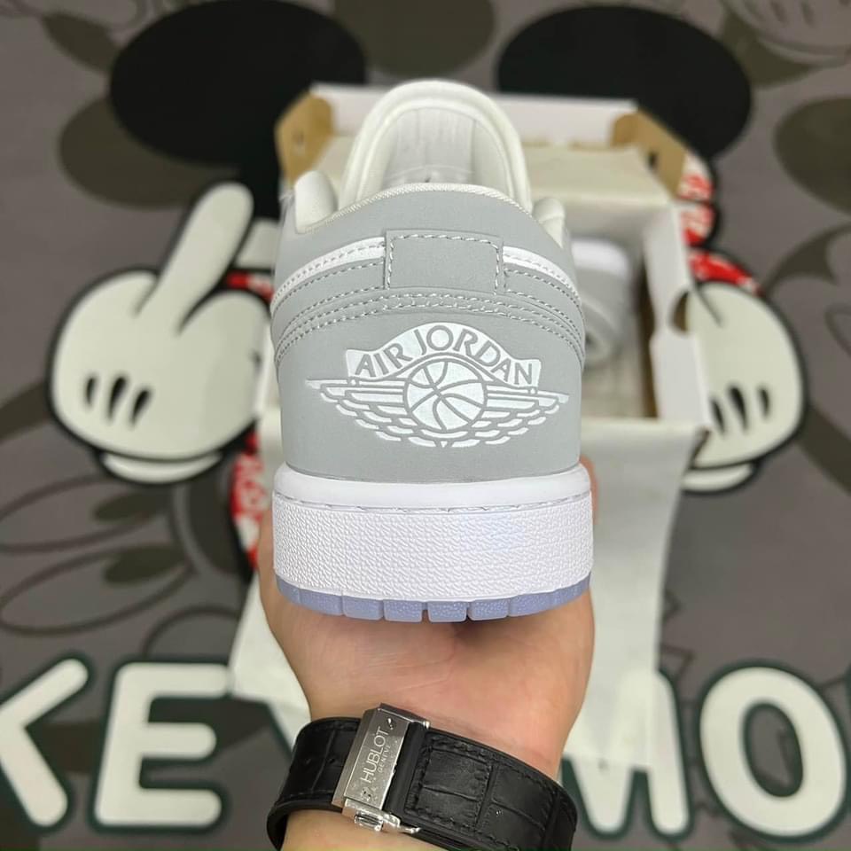 Giày Jordan xám trắng đế xanh, Giày Jordan 1 cổ thấp JD grey xám đế xanh bản đẹp full box bill tặng box bảo vệ-yugi19988