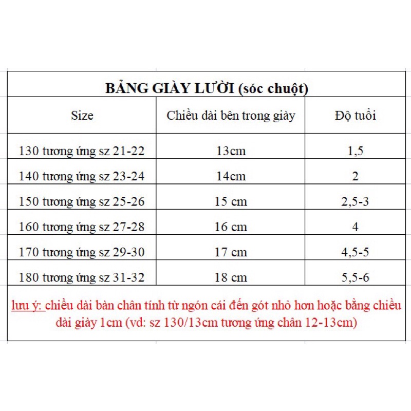 Giày lười kute siêu êm siêu nhẹ cho Bé trai gái Giày đế nhựa Eva nhẹ, đế có thiết kế rãnh chống trượt, bề mặt trong và ngoài mềm êm không bị đau gót chân. Độ đàn hồi giúp chân Bé thoải mái khi di chuyển. 🌸 Hình ảnh dễ thương : Mặt cười, Hoa lá, Thú cưng, Biển…. Màu sắc : Xanh, Hồng, Đỏ, Vàng, Đen. Size-/ chiều dài lọt lòng giày size 140/ 13,5cm tương đương size 22-23 size 150/ 14,5cm tương đương size 24-25 size 160/ 15,5cm tương đương size 26-27 size 170/ 16,5cm tương đương size 28-29 size 180/ 17,5cm tương đương size 30-31 CÁCH CHỌN SIZE: Chiều dài chân bé +-1cm VD: Chân bé dai 13cm chọn size 140 giày đảm bảo mềm, nhẹ, màu sắc như hình. bao đổi size, bao trả hàng nếu lỗi kỹ thuật hoặc giao nhầm sản phẩm. Khách hàng có thể ib cho shop để được hõ trợ tư vấn ve size, về SP...