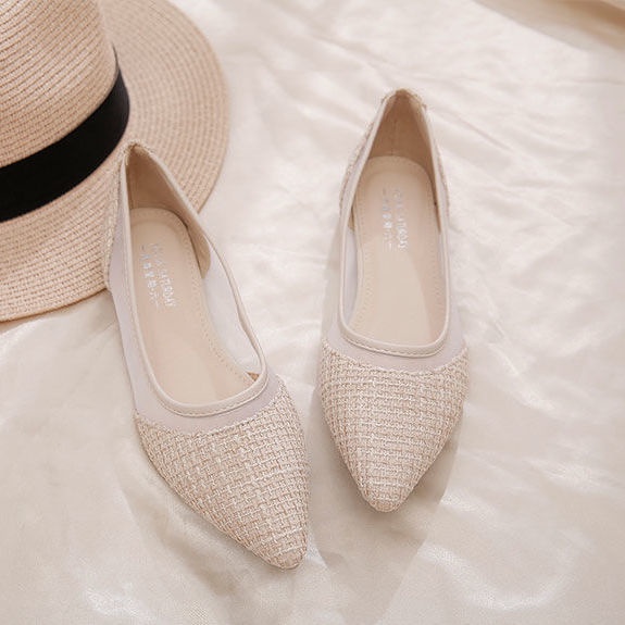 Hong Kong Premium shoes❥Giày Lười Đế Mềm Bằng Mũi Nhọn Dệt Kim Thoáng Khí Cao Cấp Cho Nữ