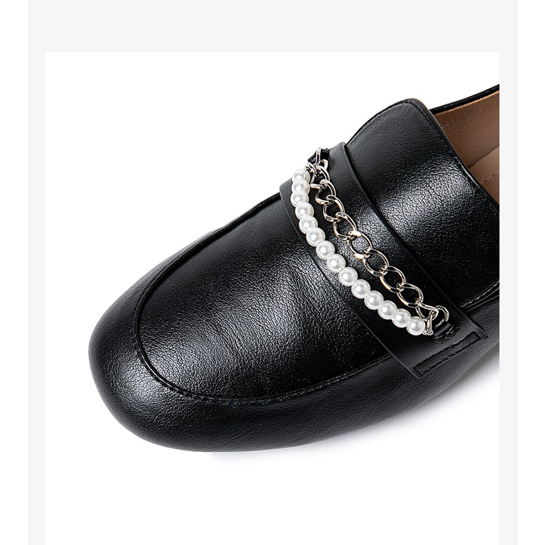 Giày Lười Gót Dày Bằng Da Phối Khóa Kim Loại Phong Cách Thời Trang Mùa Thu 2023
