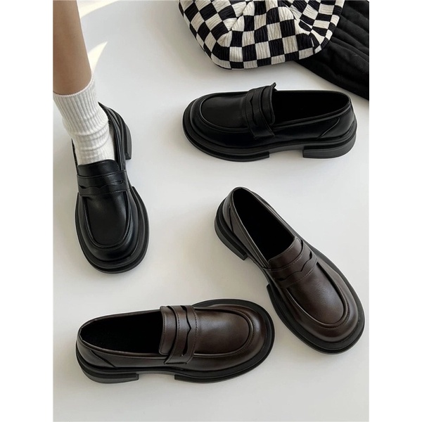 Giày Lười Da Mũi Tròn Đế Dày Phong Cách Anh Quốc Thời Trang Xuân Thu Cho Nữ