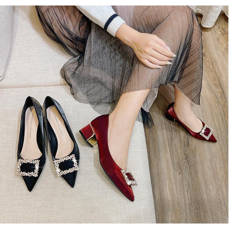 Giày nữ- giày nỉ nhung mũi nhọn gắn nơ- giày nhung nơ- giày búp bê