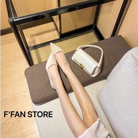Giày nữ mũi nhọn cao gót đế nhọn 6 9 phân, da mềm mại big size màu đen be trắng FFAN STORE