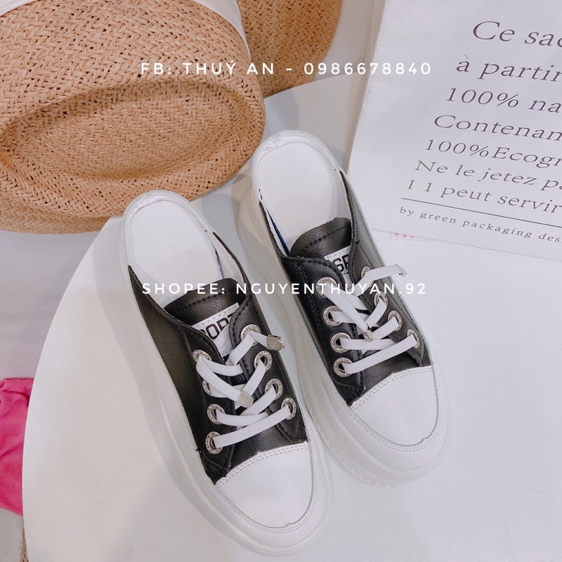 Sục thể thao nữ độn đế 5 phân, giày sục nữ da mềm phối dạ street đính đá ôm chân hack dáng, Lisa M38