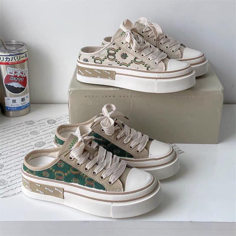 Giày sục thể thao nữ vải canvas đế cao giày lười đạp gót kiểu Ulzzang FLOWER S02 - Nguyentrang239