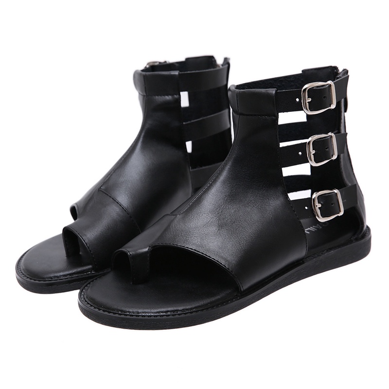 Giày Sandal Cổ Cao Hở Ngón Đế Bằng Màu Đen Thời Trang Mùa Hè Cho Nữ