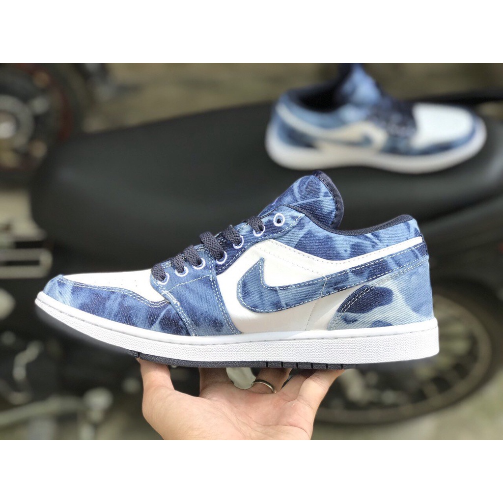 Giày Sneaker Jordan Low Vải Bò Cao Cấp, Giày Thể Thao Jd cổ thấp Xanh Full Box