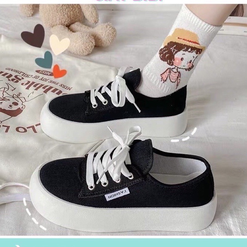Giày Thể Thao Nữ Buộc Dây Đế Dày Bánh Mì Tăng Chiều Cao Phong Cách Hàn Quốc - GS3