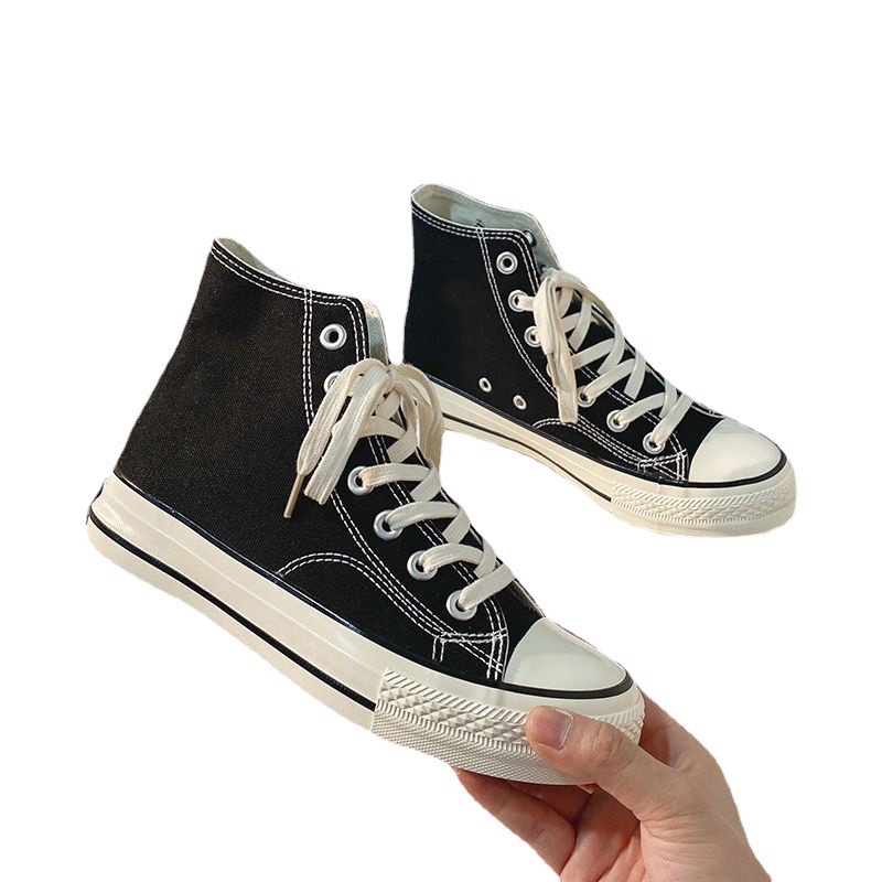 Giày thể thao cổ cao đen vải 1970 full box Giày có đủ size từ 36 đến 44 cho cả nam và nữ Form giày nhỏ nên lấy tăng 1 size đi cho thoải mái Giày đế cao su tầm 2,5cm mềm, êm chân Thân giày làm bằng vải canvas thoáng khí không gây bí mùi Shop cam kết giày y hình shop đăng Shop hỗ trợ khách đổi size nếu mang không vừa Shop tuyển sỉ và ctv toàn quốc Sđt 0962537820 Địa chỉ toà t3 thăng long capital an khánh hoài đức hà nội #giaynu #giaythethao #giayvai #giaygiare
