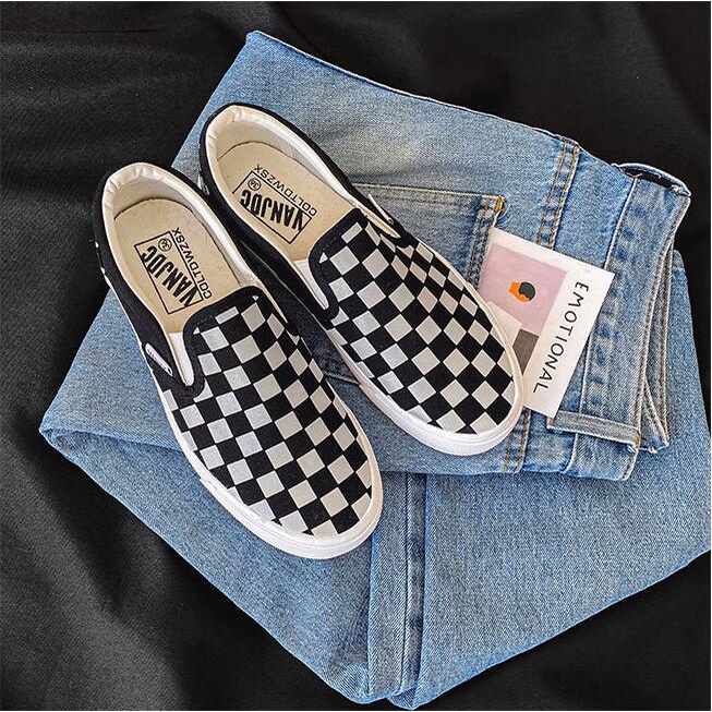 Giày Thể Thao Canvas Cổ Thấp Họa Tiết Caro Phản Quang Phong Cách Hàn Quốc Thời Trang Cho Nam Và Nữ