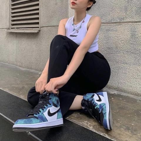 Giày thể thao JD1 Cao Cổ Tie Dye, Hyper Royal, Giầy Jordan 1 xanh loang cao cổ nam nữ full Box