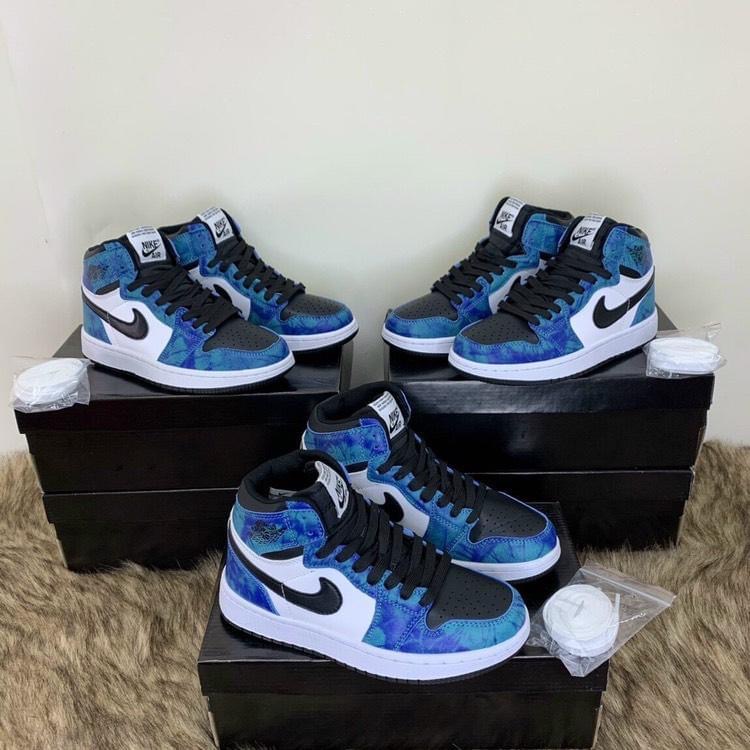 Giày thể thao Jordan 1 tie dye mid, giày sneaker JD1 nam nữ cổ cao Xanh loang đậm nước biển cực chất