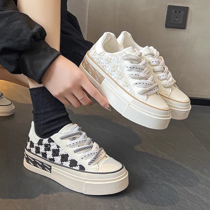 Giày Thể Thao Nữ Đế Độn Hoạ Tiết Houndstooth Đế Bánh Mì Tăng Chiều Cao HotTrend FLORA G23