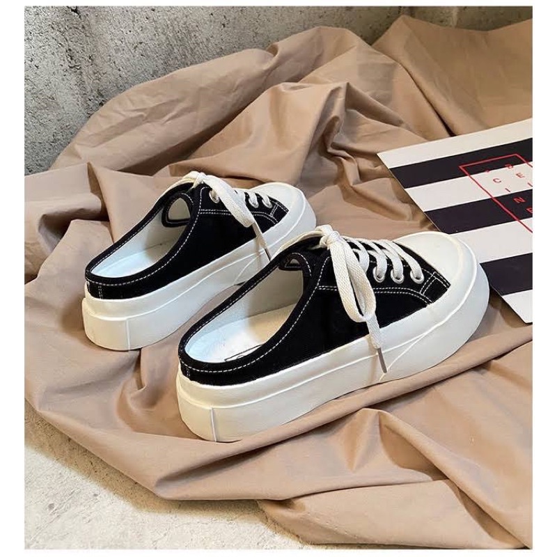 Giày thể thao nữ được làm từ chất liệu vải canvas, đế bánh mì, hoạ tiết đơn giản với gam màu trắng đen phù hợp với tất cả mọi người. Với đầy đủ size từ 36-39 Giày có 2 loại là giày thể thao và giày đạp gót