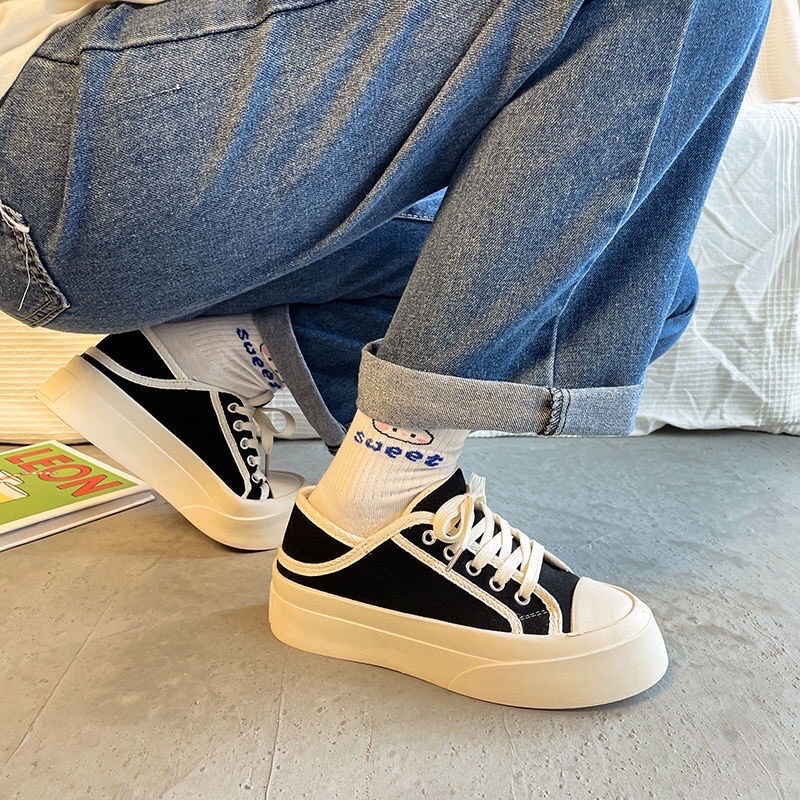 Giày sục thể thao nữ Smile độn đế 5cm chất liệu vải thô mềm dễ làm sạch đi chơi đi học siêu HOT