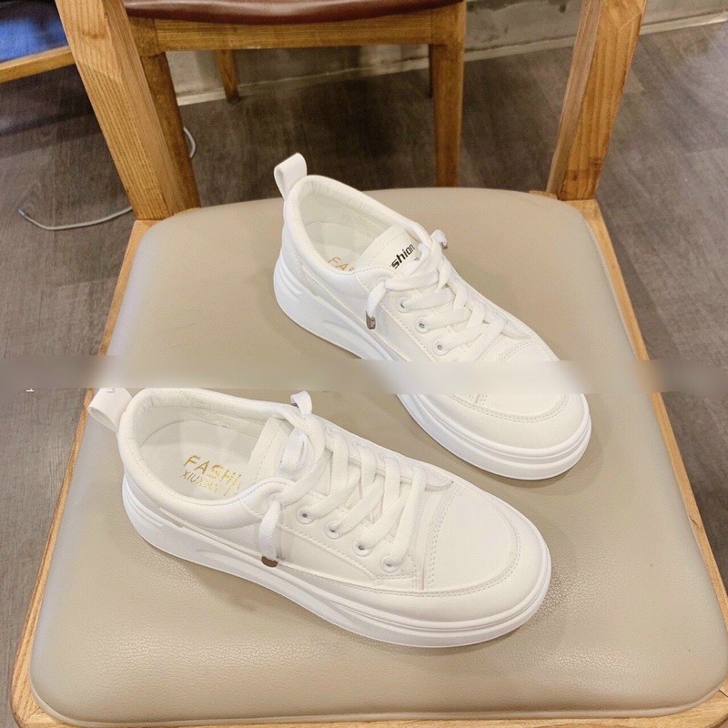 Giày Thể Thao Trắng Đế Xuồng Thiết Kế Một Hàng Nút Thời Trang Mới 2022 Cho Nữ