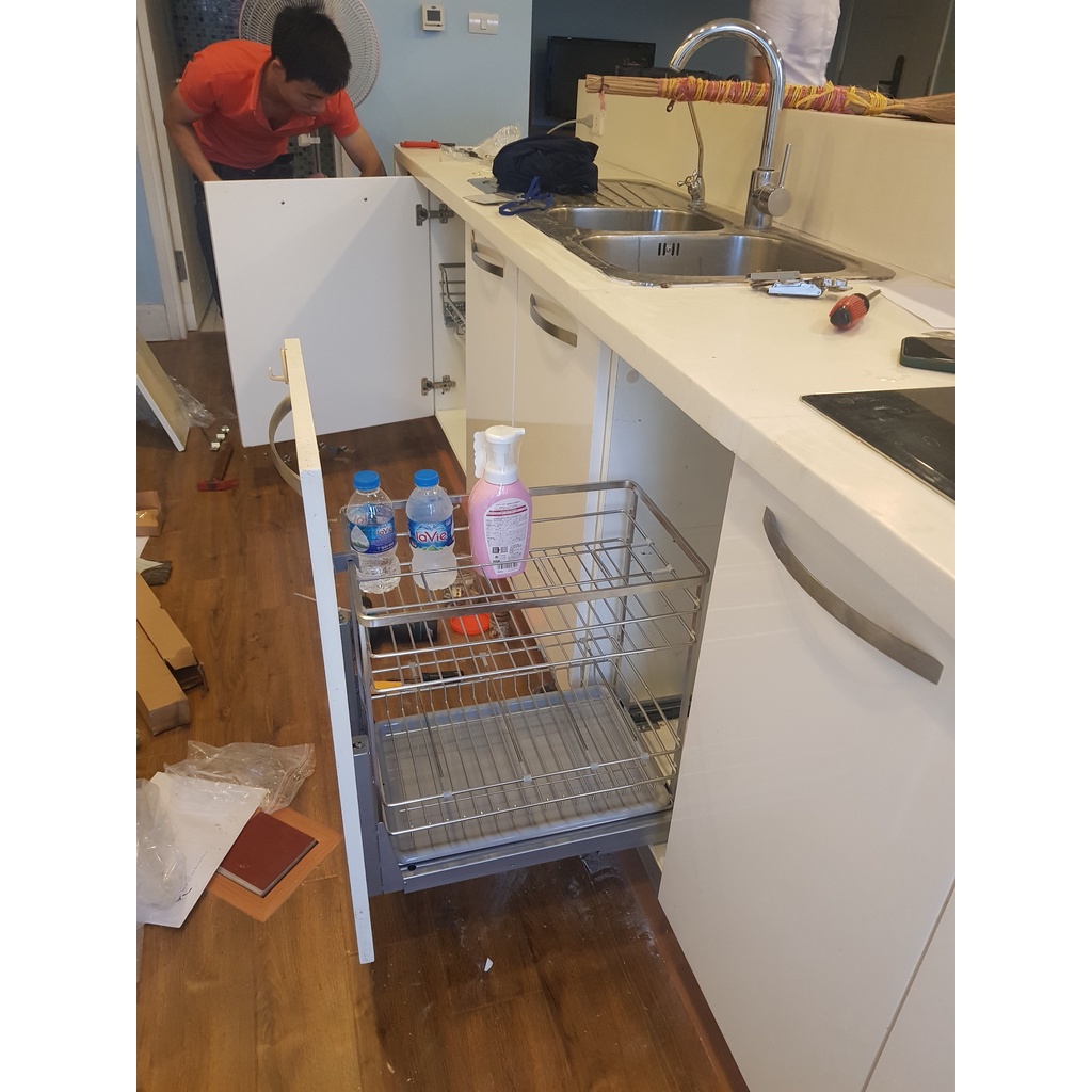 Giá để gia vị lắp tủ bếp inox có ray trượt kéo ra vào tiện lợi bền khỏe