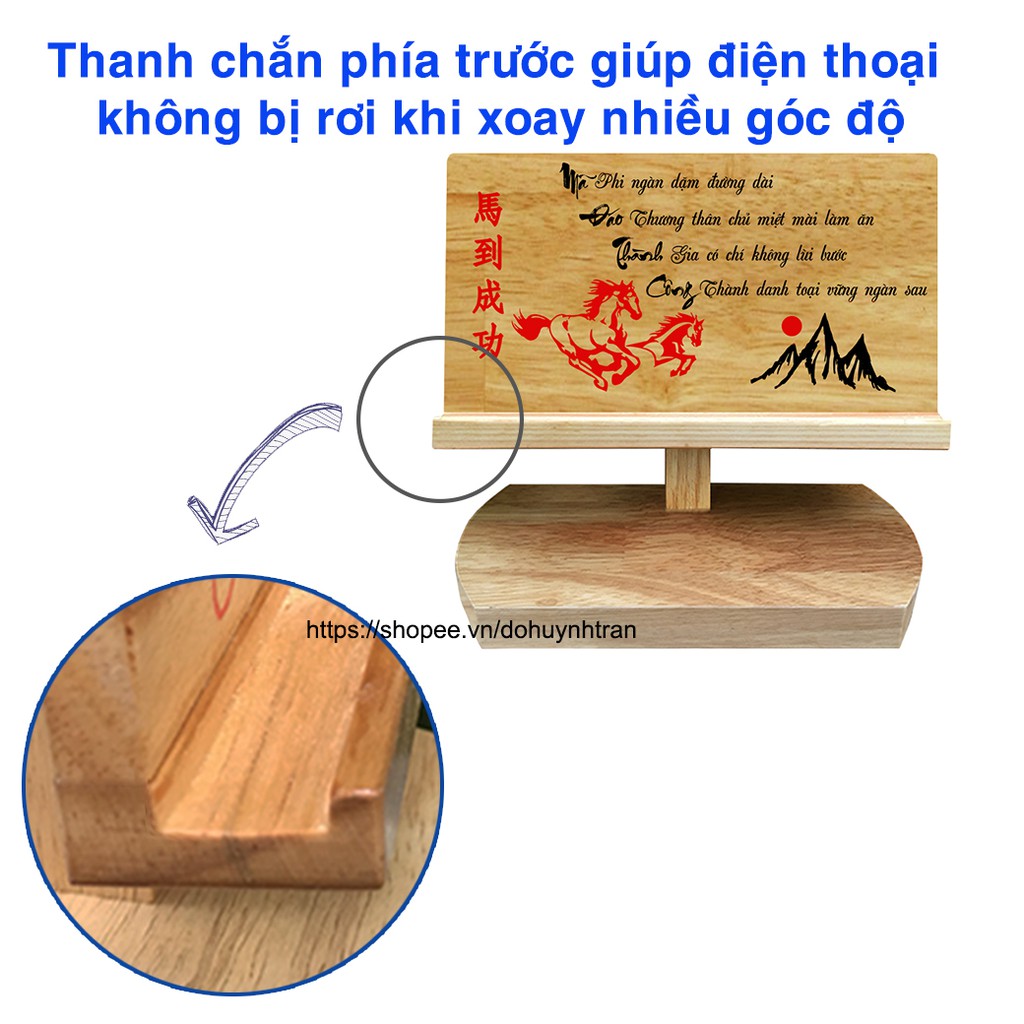 Giá đỡ điện thoại bằng gỗ viết chữ thư pháp, xem phim, nghe nhạc tiện lợi - chữ Mã Đáo Thành Công