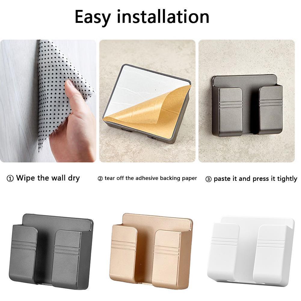 Trade name: simple paste wall hanging remote control box mobile phone charging bracket - three horizontal terms / large opening. Packing: OPP bags Commodity Size: 9*10cm Material: ABS Packing list 1 X phone holder if you want buy more than we listed, please contac