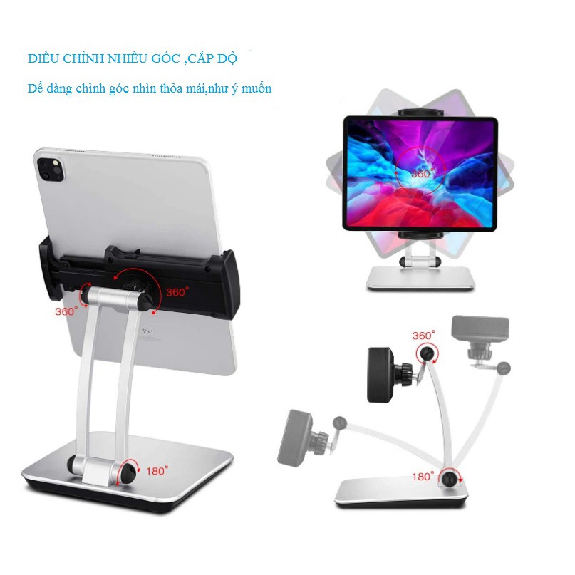 Giá đỡ Ipad,điện thoại,máy tính bảng để bàn gấp gọn xoay 360 độ, hợp kim nhôm cao cấp chắc chắn học online,văn phòng MÔ TẢ SẢN PHẨM: - Giá đỡ điện thoại để bàn, giá để máy tính bảng, ipad chống trượt, tiện dụng và thiết kế rỗng ở phía dưới có thể sạc thiết bị cùng mộ